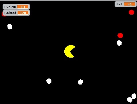 Danach lässt sich das Spiel durch Betätigung des rechten oberen Knopfes starten und die Spielfigur mit dem Joystick lenken. Das Ziel des Spiels ist es, einen Highscore zu erzielen, indem man die weißen Kugeln aufsammelt und den roten Kugeln ausweicht, sonst droht dem Spieler ein Game Over und bedeutet somit das Ende des Spiel.