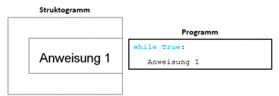 Der Anweisungsblock 1 wird nur dann durchgeführt, wenn die Bedingung zutreffend ist (wahr, True, logisch 1). Ist die Bedingung jedoch nicht zutreffend (falsch, False, logisch 0), so wird der Durchlauf ohne eine weitere Anweisung fortgeführt.