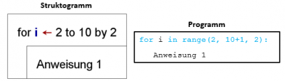 Anweisung 1 wird insgesamt fünf Mal nacheinander ausgeführt, da die Laufvariable von zwei bis zehn in zweierschritten hochgezählt wird (2, 4, 6, 8, 10).